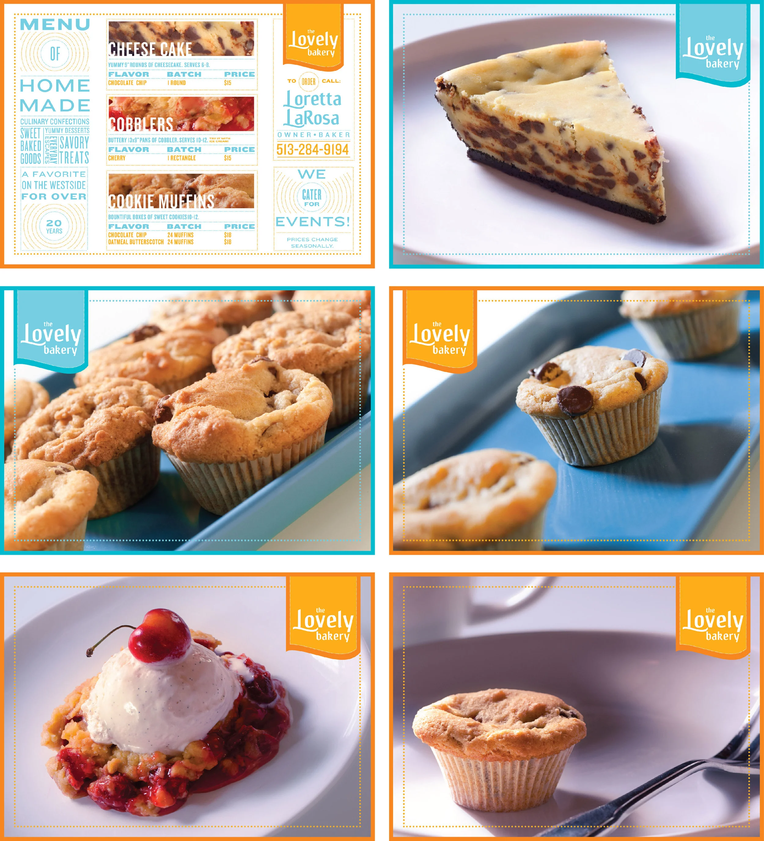 The Lovely Bakery is a small bakery in Cincinnati, Ohio. Specializing in party catering and locally known for their iconic cookie muffin. Developed brand and a series of postcard price cards with graphic design colleague, Sean Duffy.