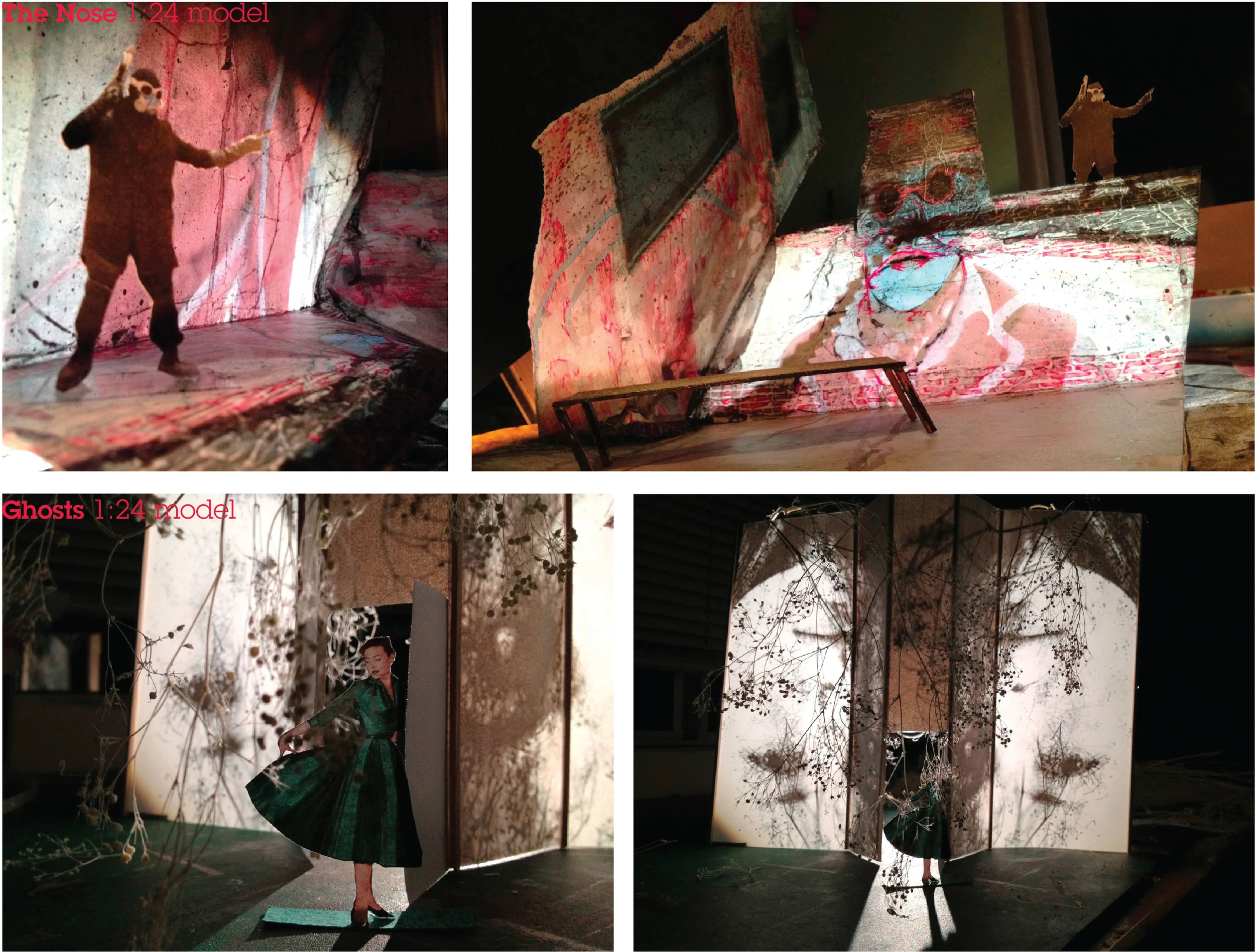 Working Models are a series of conceptual models for theatrical experiences. Using various techniques of printing, sculpting, collaging, kit-bashing to develop the models.